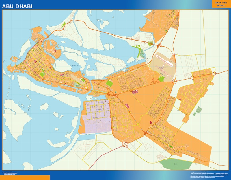 Mapa Abu Dhabi. El mapa se imprime en papel FOTOGRÁFICO especial de cartografía de 200 grs, y se envía, gratis, a la península y Baleares, en un tubo de cartón. Dispone de diversos acabados que puede ver en las opciones de compra del mapa.