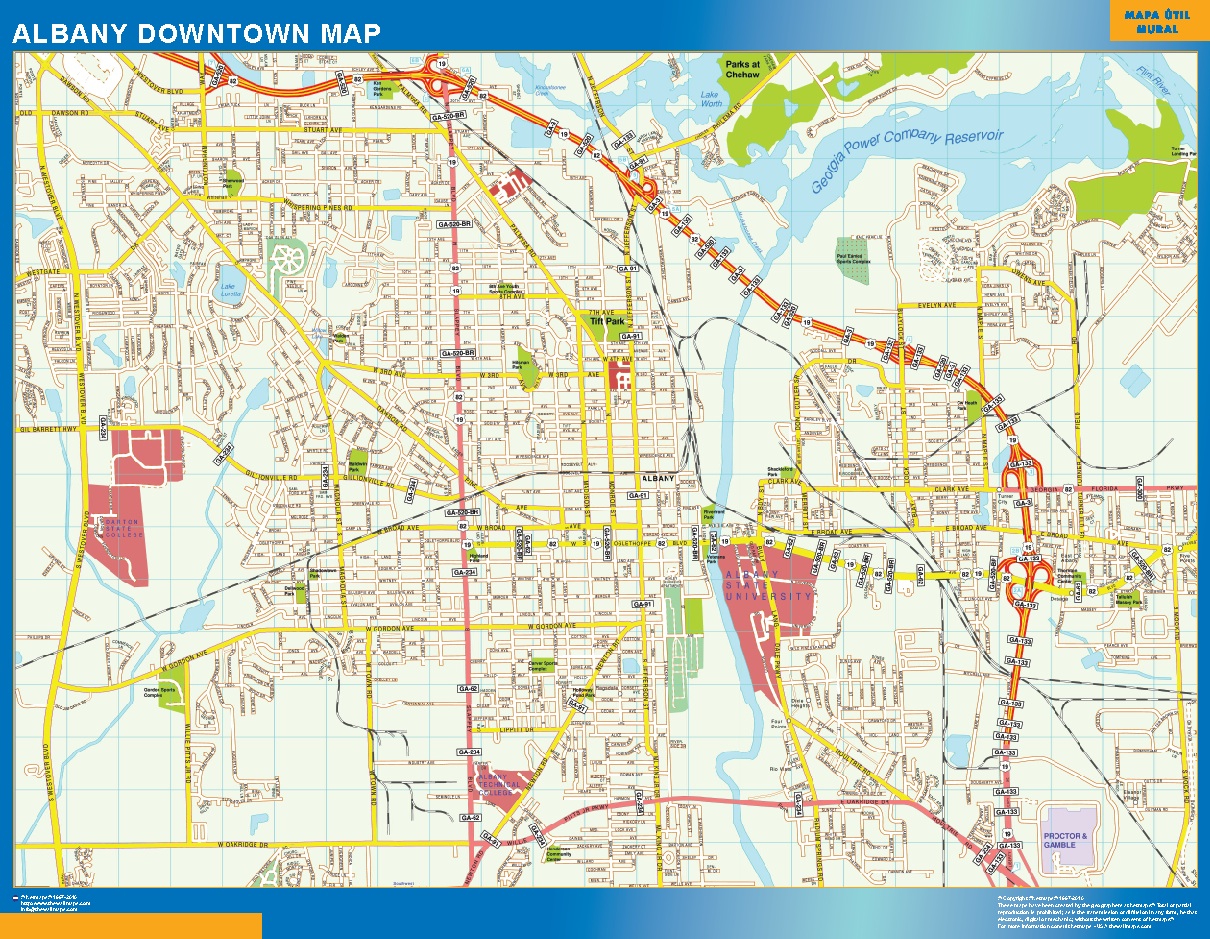 Mapa Albany downtown. El mapa se imprime en papel FOTOGRÁFICO especial de cartografía de 200 grs, y se envía, gratis, a la península y Baleares, en un tubo de cartón. Dispone de diversos acabados que puede ver en las opciones de compra del mapa.