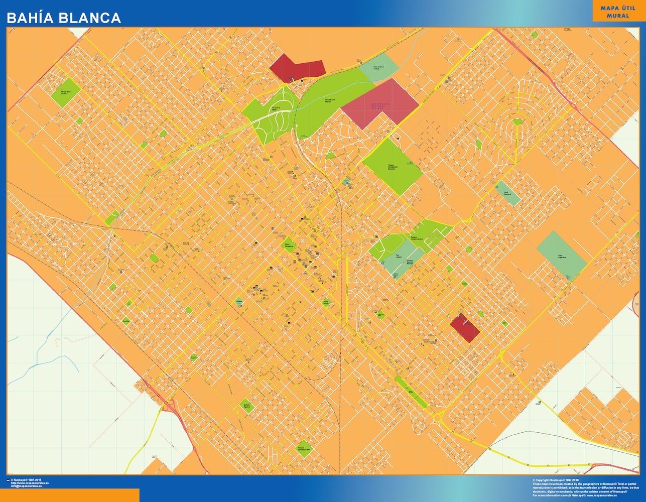 Mapa Bahia Blanca en Argentina gigante para pared. Tamaño del mapa es 150 cm en su lado más corto. El otro lado del mapa es proporcional mayor. Es el mapa más grande del mercado en una pieza.