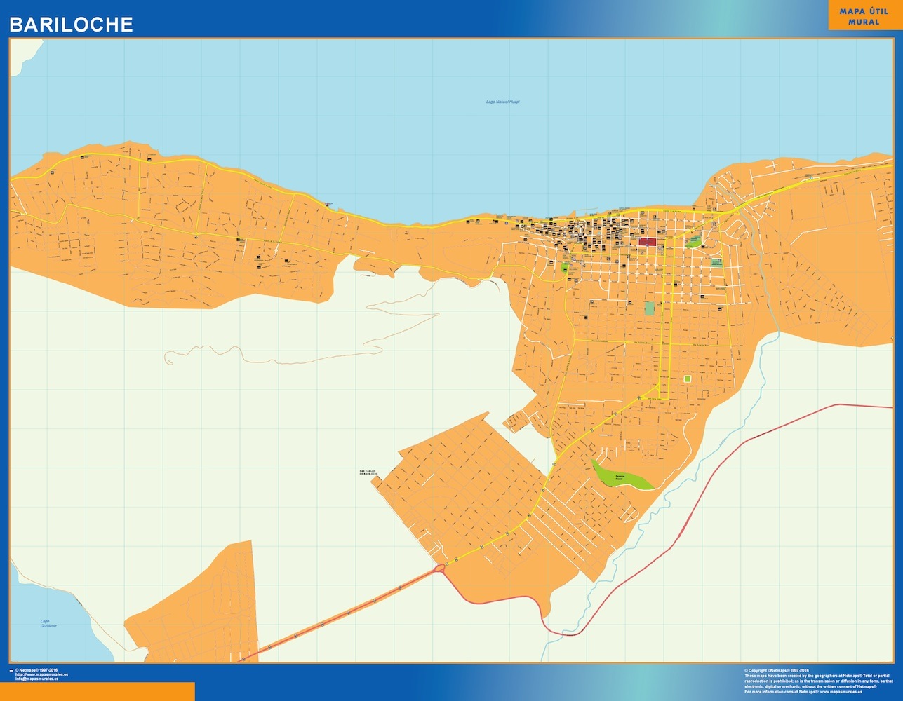 Mapa Bariloche en Argentina. El mapa se imprime en papel FOTOGRÁFICO especial de cartografía de 200 grs, y se envía, gratis, a la península y Baleares, en un tubo de cartón. Dispone de diversos acabados que puede ver en las opciones de compra del mapa.