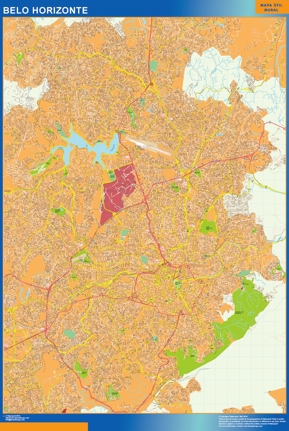 Mapa Belo Horizonte Brasil. El mapa se imprime en papel FOTOGRÁFICO especial de cartografía de 200 grs, y se envía, gratis, a la península y Baleares, en un tubo de cartón. Dispone de diversos acabados que puede ver en las opciones de compra del mapa.