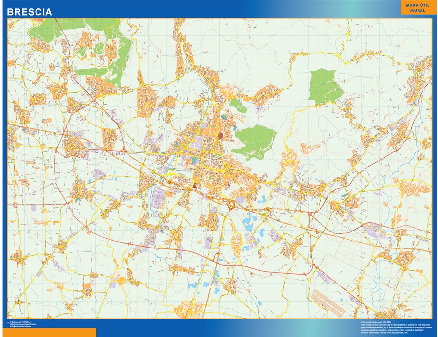 Mapa Brescia gigante para pared. Tamaño del mapa es 150 cm en su lado más corto. El otro lado del mapa es proporcional mayor. Es el mapa más grande del mercado en una pieza.