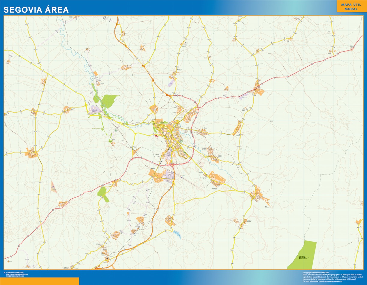 Mapa carreteras Segovia Area gigante para pared. Tamaño del mapa es 150 cm en su lado más corto. El otro lado del mapa es proporcional mayor. Es el mapa más grande del mercado en una pieza.