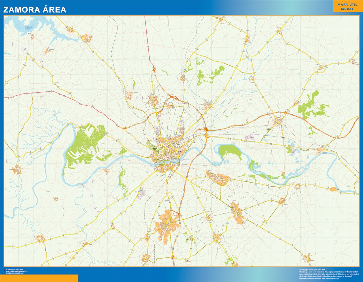 Mapa carreteras Zamora Area gigante para pared. Tamaño del mapa es 150 cm en su lado más corto. El otro lado del mapa es proporcional mayor. Es el mapa más grande del mercado en una pieza.