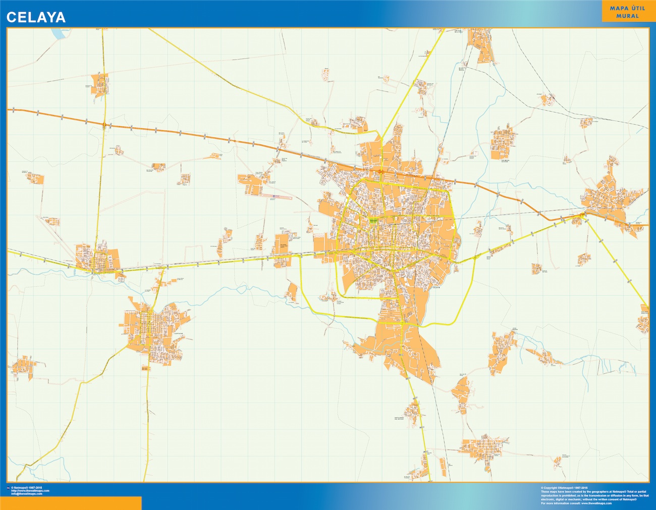 Mapa Celaya en Mexico. El mapa se imprime en papel FOTOGRÁFICO especial de cartografía de 200 grs, y se envía, gratis, a la península y Baleares, en un tubo de cartón. Dispone de diversos acabados que puede ver en las opciones de compra del mapa.