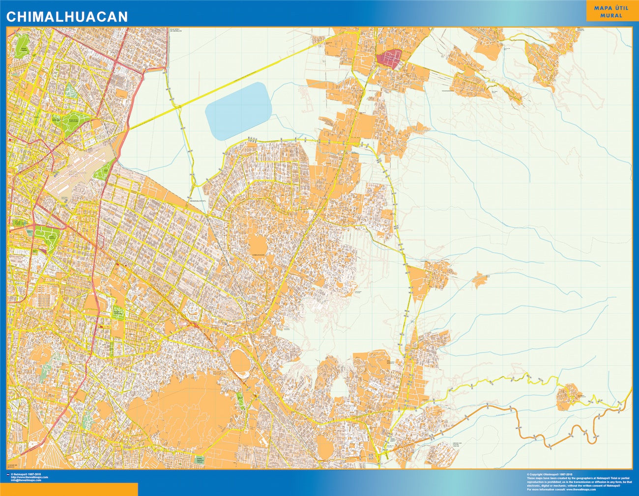 Mapa Chimalhuacan en Mexico gigante para pared. Tamaño del mapa es 150 cm en su lado más corto. El otro lado del mapa es proporcional mayor. Es el mapa más grande del mercado en una pieza.