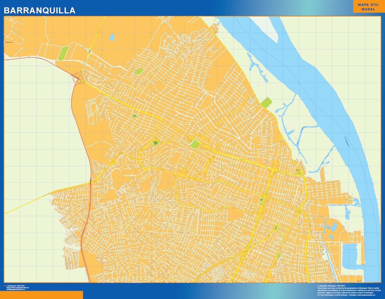 Mapa de Barranquilla en Colombia. El mapa se imprime en papel FOTOGRÁFICO especial de cartografía de 200 grs, y se envía, gratis, a la península y Baleares, en un tubo de cartón. Dispone de diversos acabados que puede ver en las opciones de compra del mapa.