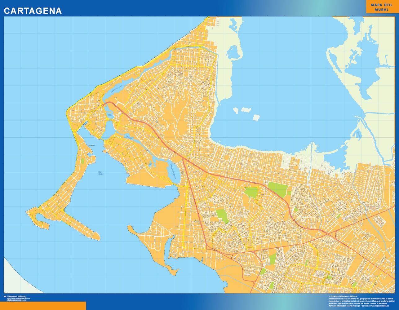 Mapa de Cartagena en Colombia gigante para pared. Tamaño del mapa es 150 cm en su lado más corto. El otro lado del mapa es proporcional mayor. Es el mapa más grande del mercado en una pieza.