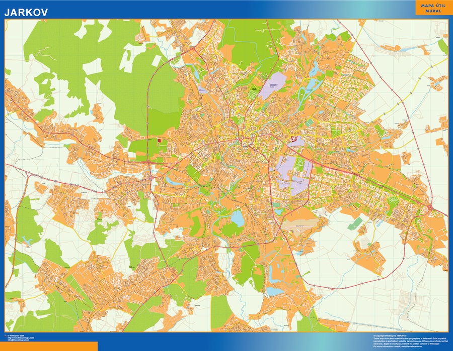Mapa de Jarkov en Ucrania gigante para pared. Tamaño del mapa es 150 cm en su lado más corto. El otro lado del mapa es proporcional mayor. Es el mapa más grande del mercado en una pieza.