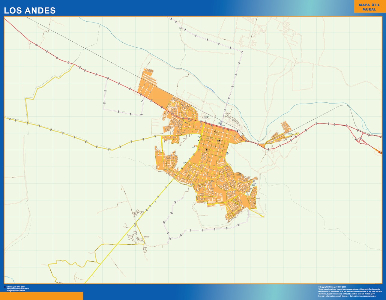 Mapa de Los Andes en Chile. El mapa se imprime en papel FOTOGRÁFICO especial de cartografía de 200 grs, y se envía, gratis, a la península y Baleares, en un tubo de cartón. Dispone de diversos acabados que puede ver en las opciones de compra del mapa.