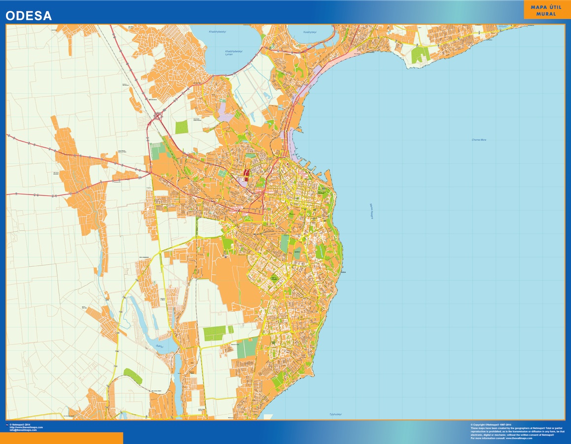 Mapa de Odesa en Ucrania. El mapa se imprime en papel FOTOGRÁFICO especial de cartografía de 200 grs, y se envía, gratis, a la península y Baleares, en un tubo de cartón. Dispone de diversos acabados que puede ver en las opciones de compra del mapa.