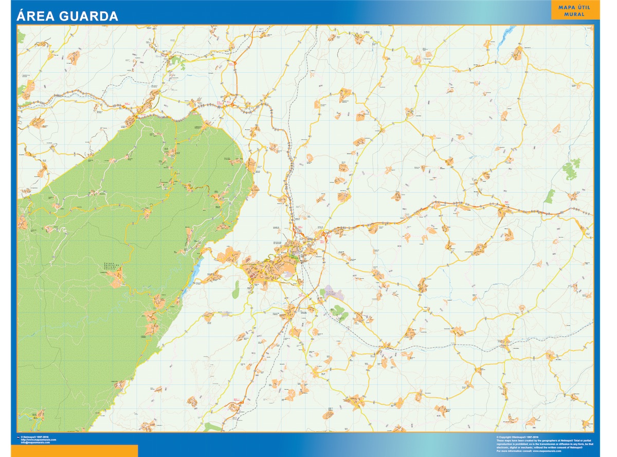 Mapa Guarda área urbana gigante para pared. Tamaño del mapa es 150 cm en su lado más corto. El otro lado del mapa es proporcional mayor. Es el mapa más grande del mercado en una pieza.