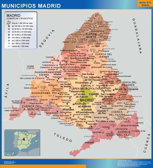 Mapa Madrid por municipios. El mapa está impreso en papel especial de 200 grs, y se envía, gratis, a la península, Baleares y Canarias, en un tubo de cartón.