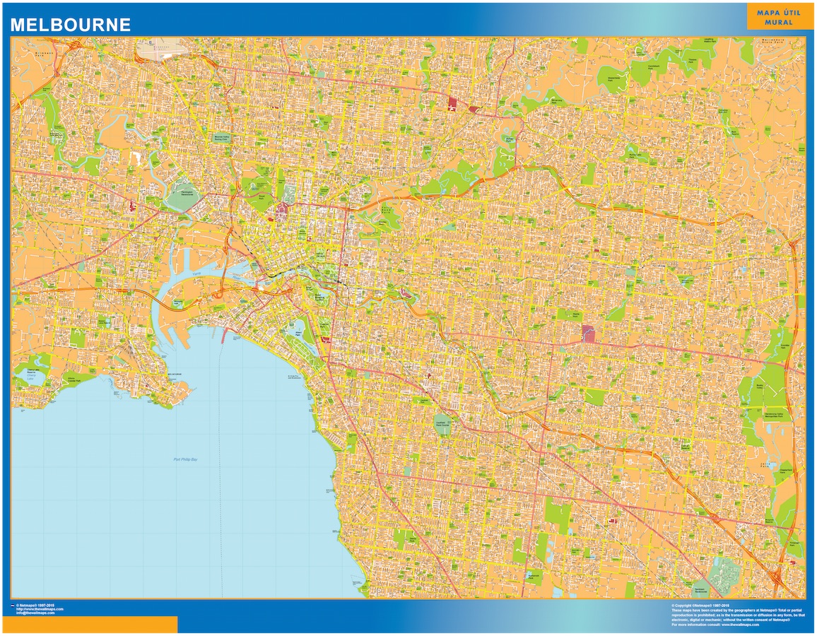 Mapa Melbourne Australia gigante para pared. Tamaño del mapa es 150 cm en su lado más corto. El otro lado del mapa es proporcional mayor. Es el mapa más grande del mercado en una pieza.