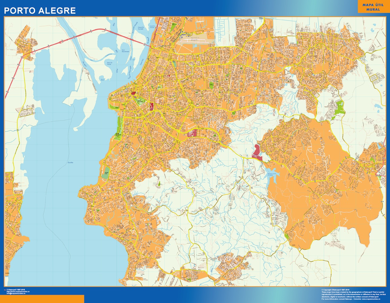Mapa Porto Alegre Brasil. El mapa se imprime en papel FOTOGRÁFICO especial de cartografía de 200 grs, y se envía, gratis, a la península y Baleares, en un tubo de cartón. Dispone de diversos acabados que puede ver en las opciones de compra del mapa.