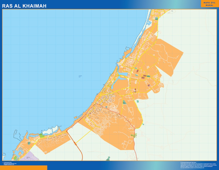 Mapa Ras Al Khaimah. El mapa se imprime en papel FOTOGRÁFICO especial de cartografía de 200 grs, y se envía, gratis, a la península y Baleares, en un tubo de cartón. Dispone de diversos acabados que puede ver en las opciones de compra del mapa.