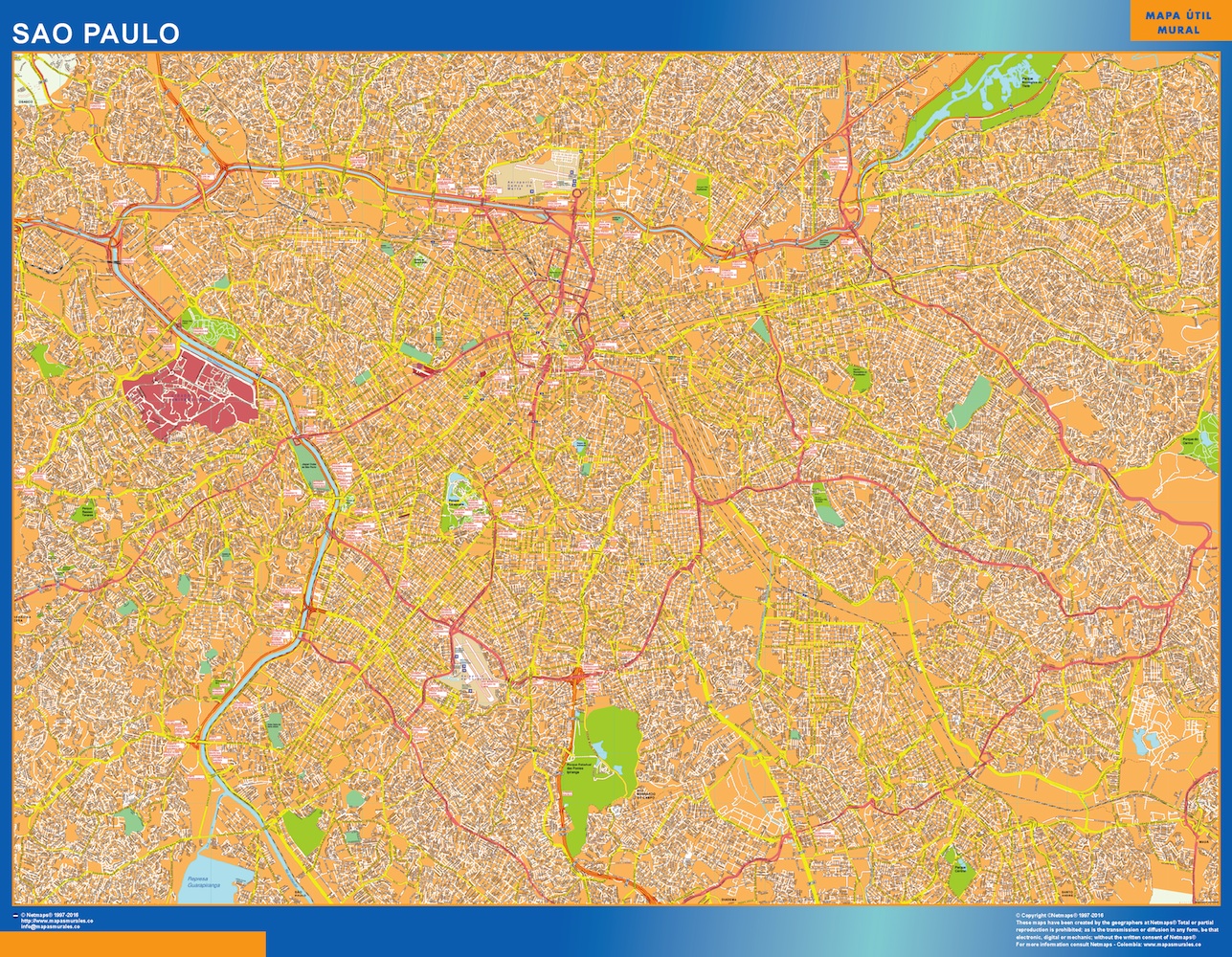 Mapa Sao Paulo Brasil. El mapa se imprime en papel FOTOGRÁFICO especial de cartografía de 200 grs, y se envía, gratis, a la península y Baleares, en un tubo de cartón. Dispone de diversos acabados que puede ver en las opciones de compra del mapa.