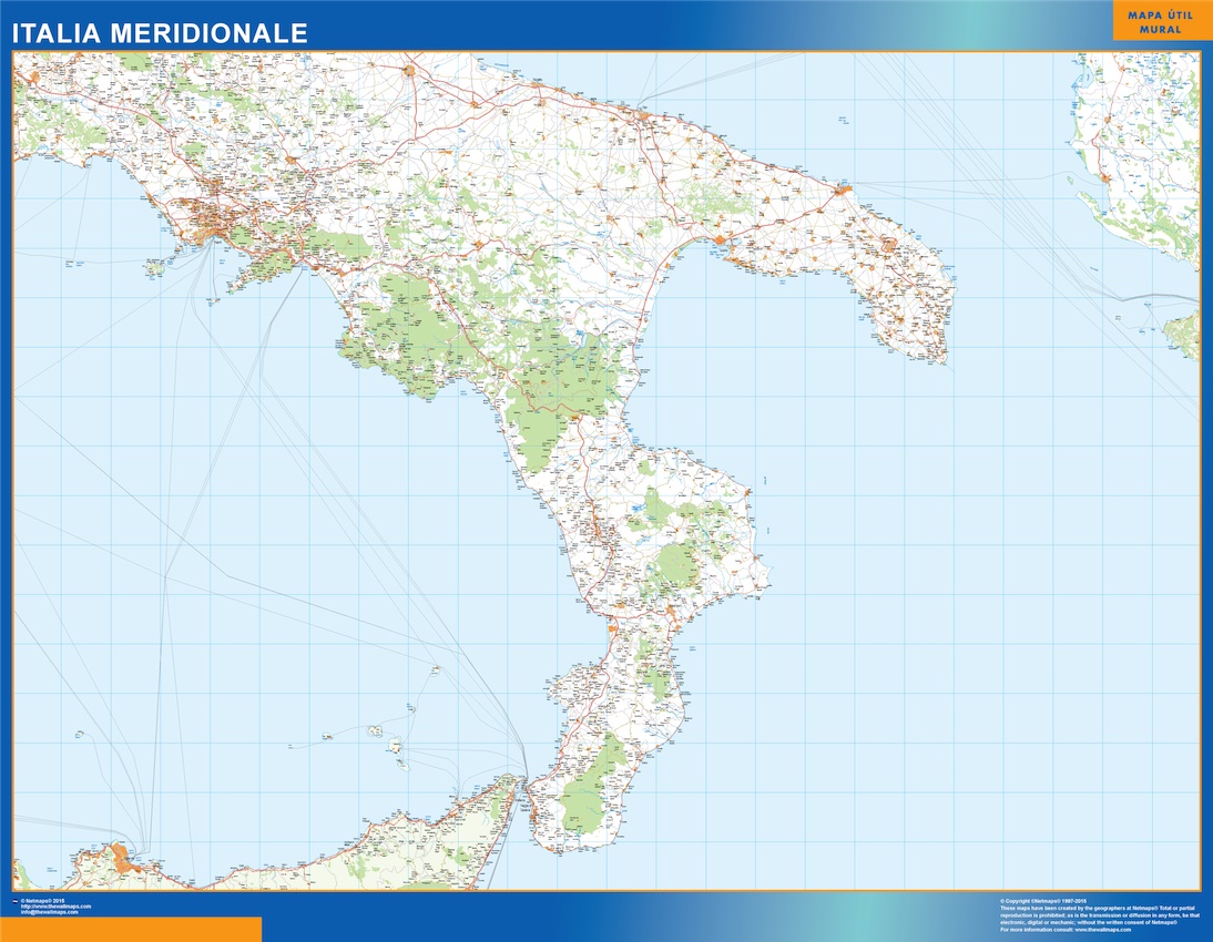 SKU: Mapa sur Italia carreteras para pared Categoría: Etiqueta: