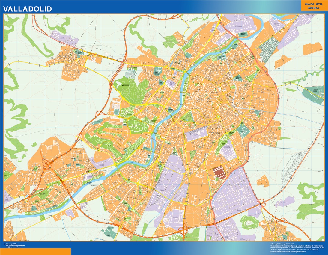 Mapa Valladolid callejero. El mapa se imprime en papel FOTOGRÁFICO especial de cartografía de 200 grs, y se envía, gratis, a la península y Baleares, en un tubo de cartón. Dispone de diversos acabados que puede ver en las opciones de compra del mapa.