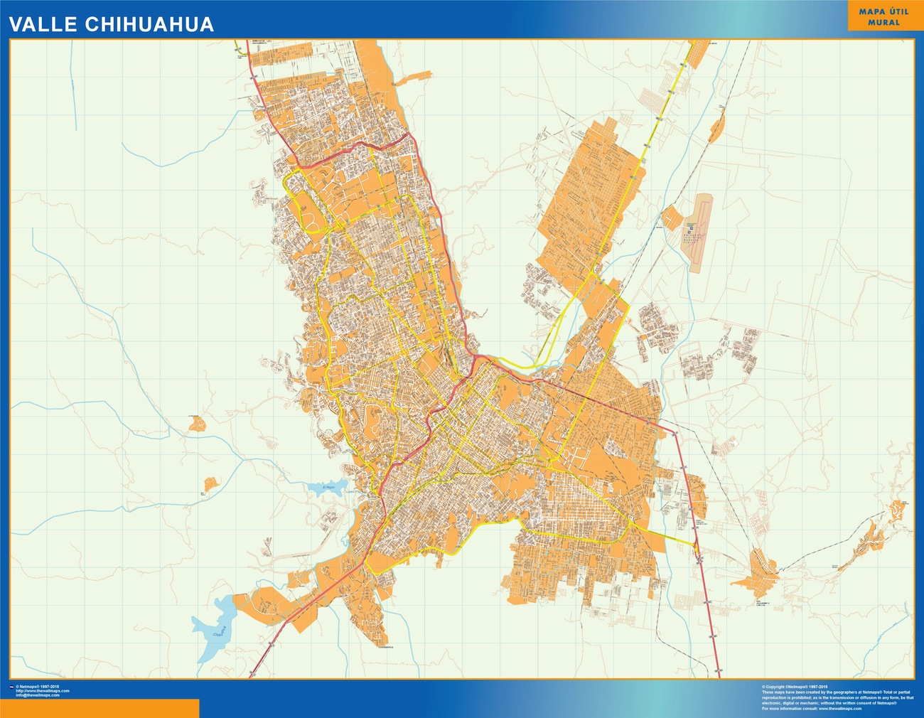 Mapa Valle Chihuahua en Mexico gigante para pared. Tamaño del mapa es 150 cm en su lado más corto. El otro lado del mapa es proporcional mayor. Es el mapa más grande del mercado en una pieza.
