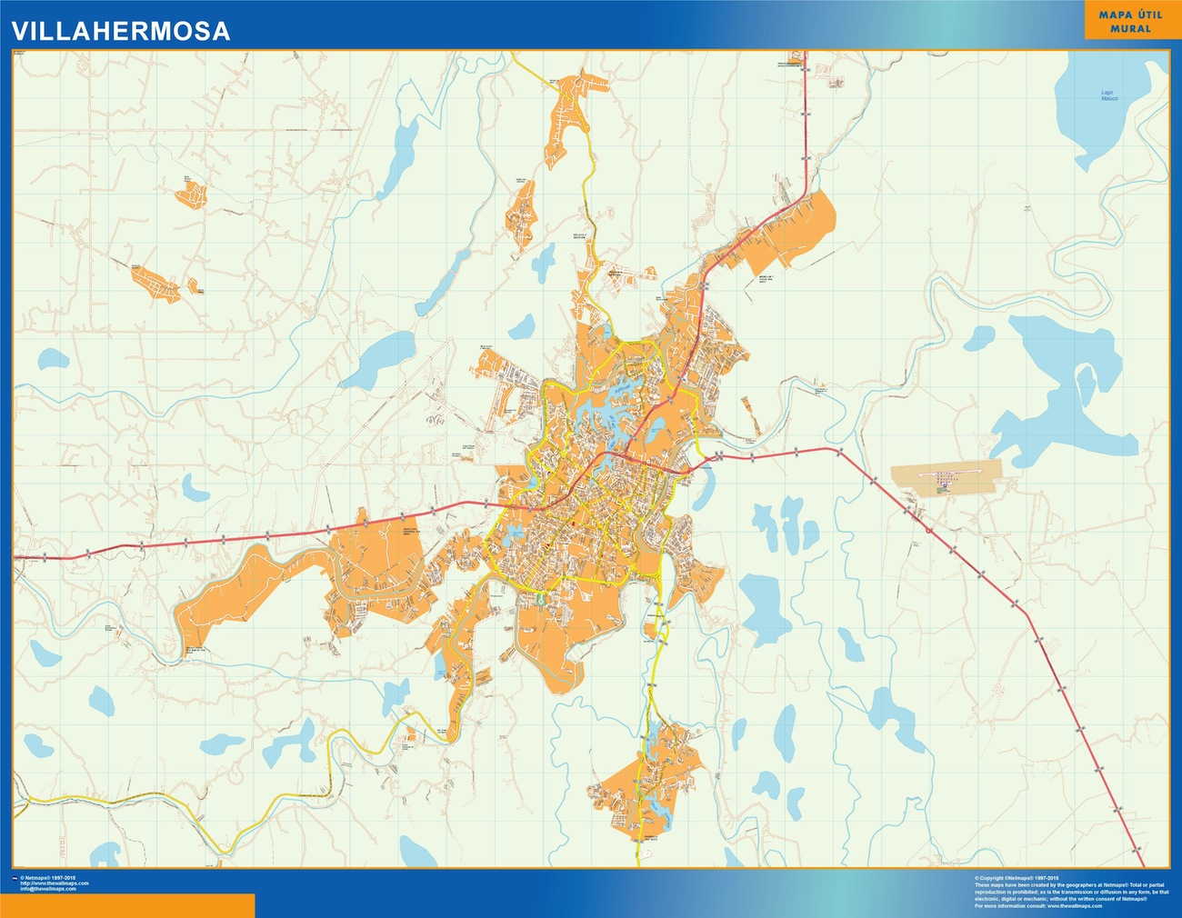 Mapa Villahermosa en Mexico. El mapa se imprime en papel FOTOGRÁFICO especial de cartografía de 200 grs, y se envía, gratis, a la península y Baleares, en un tubo de cartón. Dispone de diversos acabados que puede ver en las opciones de compra del mapa.